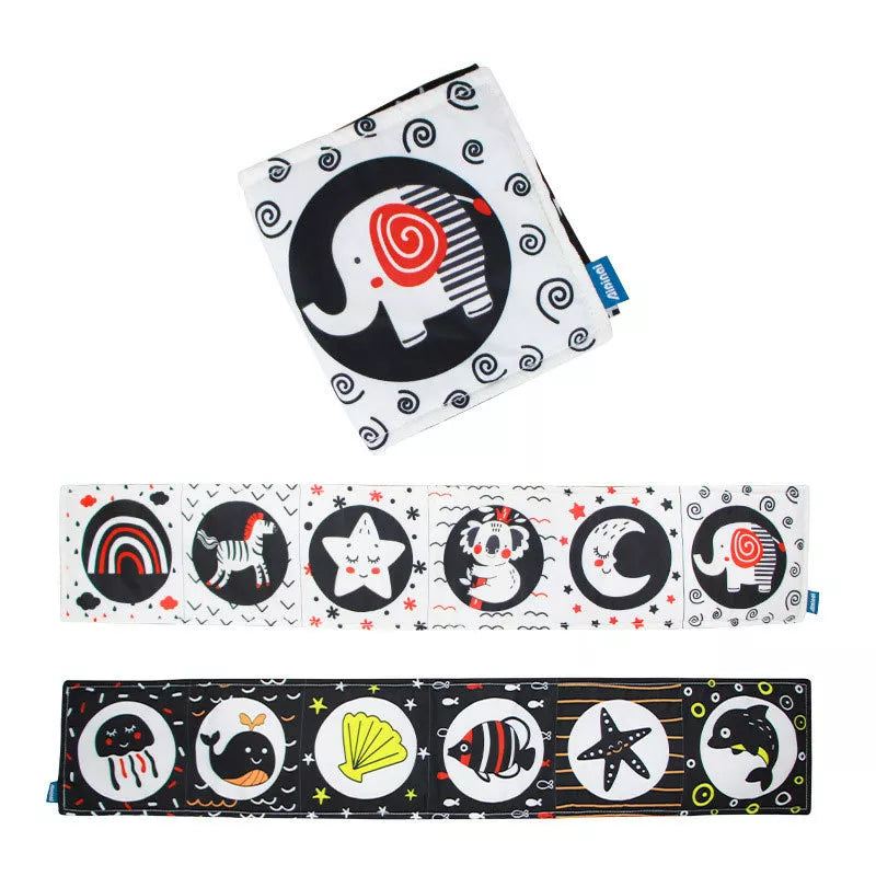 Livro De Pano Preto E Branco De Alto Contraste Para Bebês especialmente projetado para os preciosos olhinhos dos bebês recém-nascidos. Com páginas em preto e branco de alto contraste, este livro não é apenas uma fonte de entretenimento, mas também uma ferramenta educativa para estimular os sentidos visuais do seu bebê desde os primeiros dias.