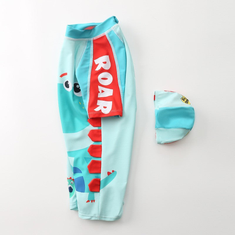 Macaquinho de Praia Infantil Manga Curta Dino Azul Claro a combinação perfeita de proteção e fofura para os momentos de praia e piscina. Com um macaquinho charmoso e uma touca fofa, seu pequeno estará pronto para se divertir com segurança sob o sol!