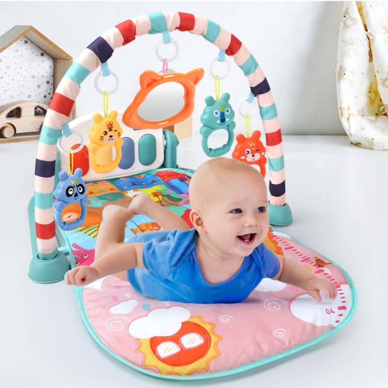- Estímulo Sensorial: O tapete apresenta cores vibrantes, texturas diferenciadas e brinquedos divertidos pendurados, estimulando os sentidos do bebê e incentivando o interesse por novas descobertas.