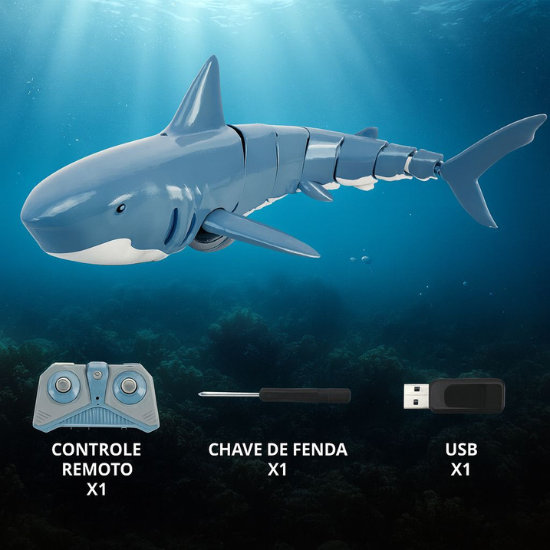 O Tubarão RC possui movimentos super realistas, cauda articulada e design fiel, nadando como um verdadeiro predador dos mares. Ideal para surpreender crianças e adultos em momentos de lazer.